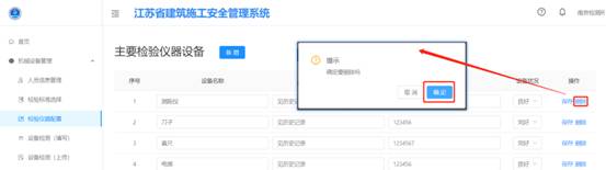 3.在儀器列表中,點(diǎn)擊刪除鍵后會(huì)彈出提示框,再點(diǎn)擊【確認(rèn)】按鈕后即可刪除。
