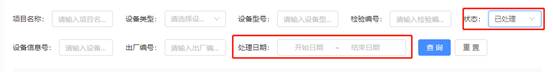 2.如需查詢已完成檢測(cè)流程的設(shè)備信息,可在狀態(tài)欄點(diǎn)擊【已處理】查詢,查看檢測(cè)報(bào)告。